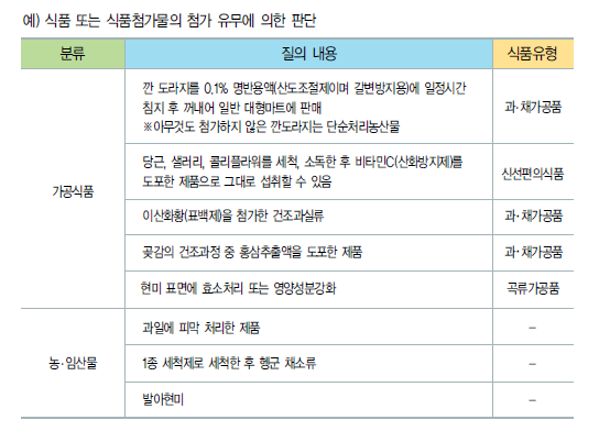 1) 식품 또는 식품첨가물의 첨가 유무에 의한 판단