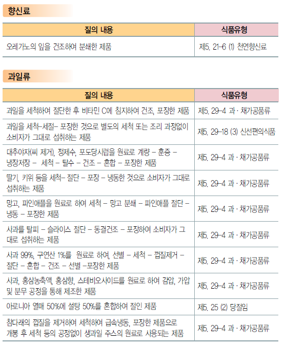 : 해동 후 바로 섭취하는 냉동 단순처리 과채류는 과•채가공품으로, 바로