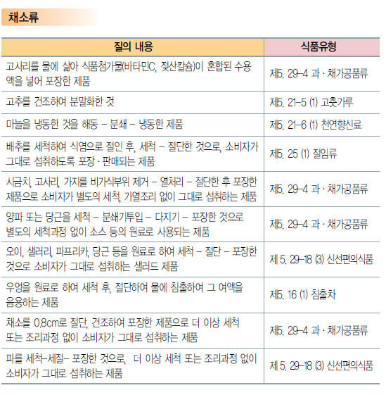 다만, 세척 없이 바로 또는 양념을 혼합하여 섭취하도록 가공한 나물은 가공식품 (과•채가공품)