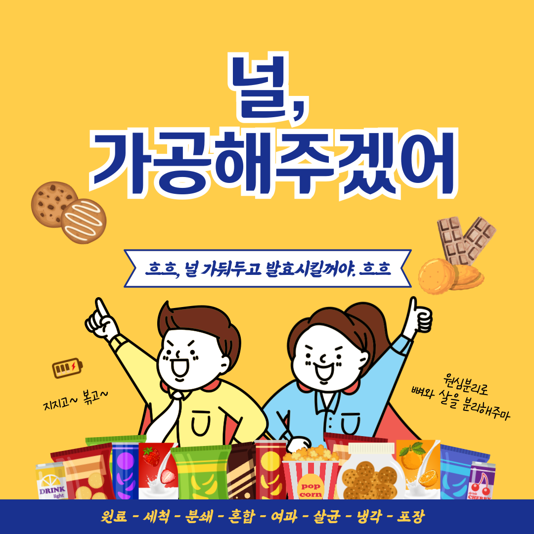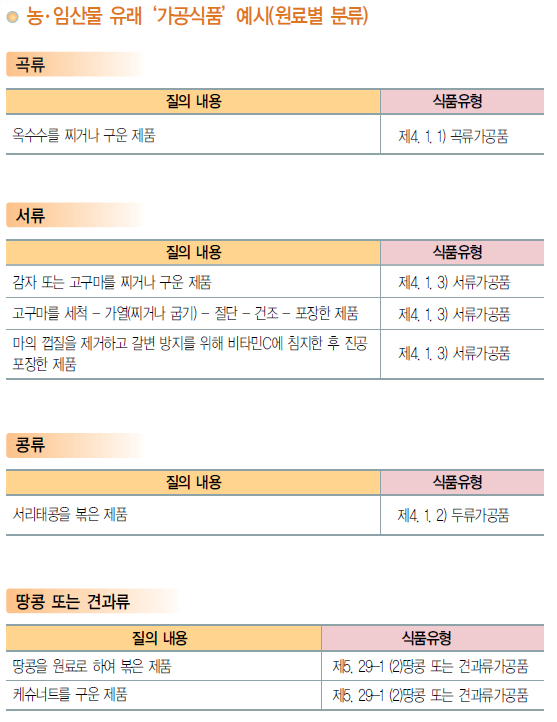 ※ 분쇄공정, 착즙공정, 볶음공정, 살균•멸균공정을 거친 제품은 가공식품