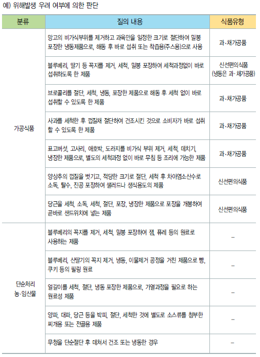 단순처리 농·임산물이라 하더라도 섭취 시 세척, 가열조리 등의 과정 없이 바로