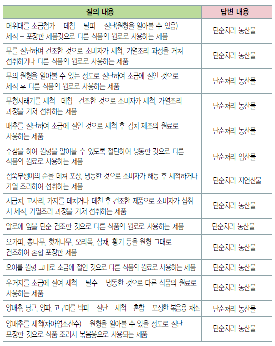 단순처리한 농·임산물로서 섭취 시 세척, 가열조리 등의 과정을 필요로 하는