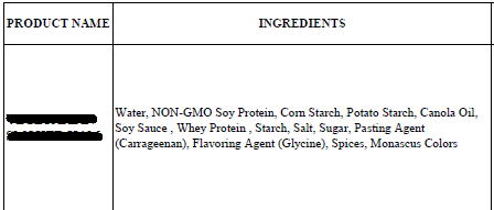 어떤 경우에는 특정 원재료만 배합비율을 기재하여