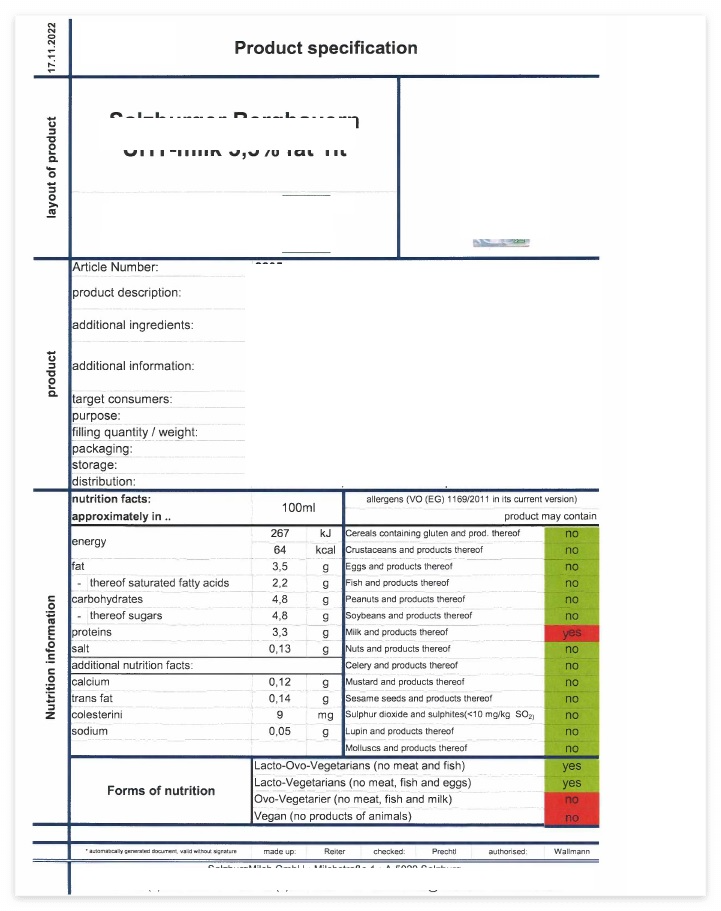 수입식품 수입신고서 작성 및 한글표시사항 작성에필요한 정보가 적힌 서류를 일컫습니다.