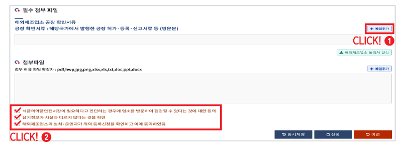 공장등록증(영문)과 해외제조업소 동의서 2가지가 있고,