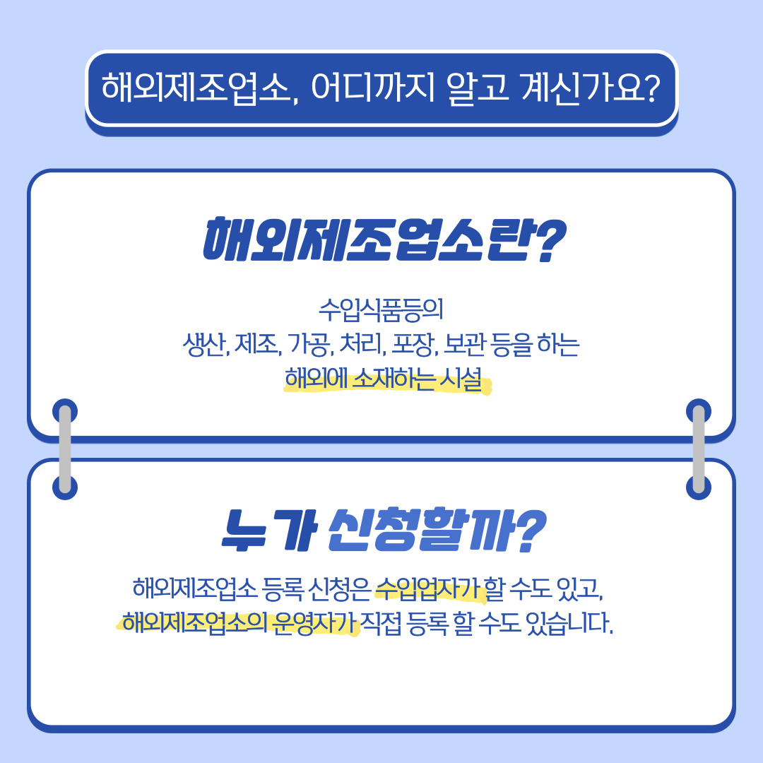 가공식품은 해외제조업소 등록을 해야하는 것이구요.