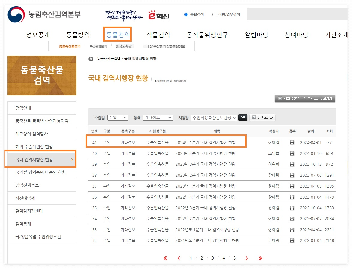 내륙으로 이동시킬 축산물에 대한 확인을 하구요.