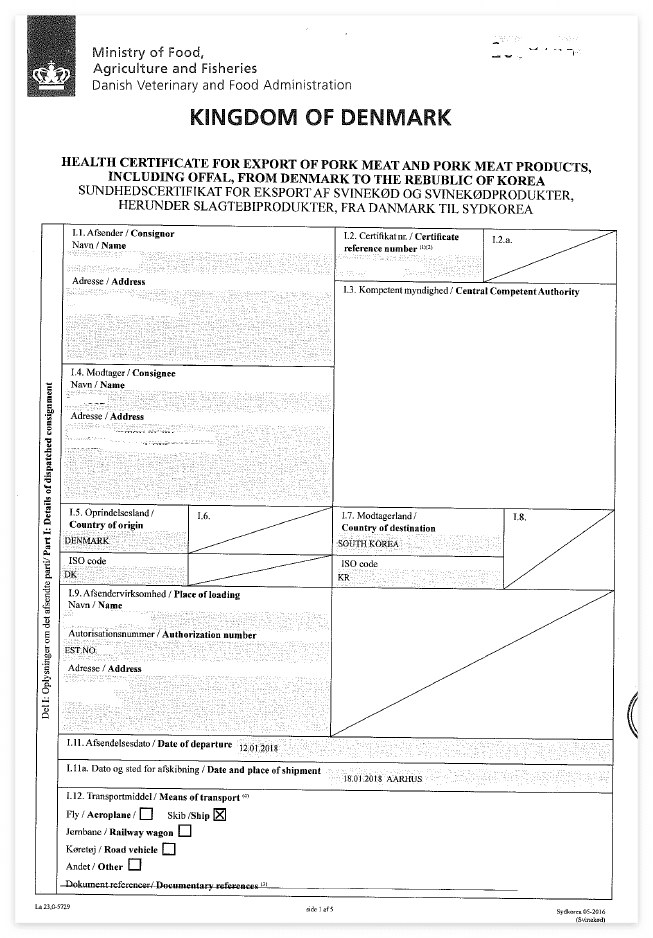 식품 검사 단계에서는 수출국 정부 당국에서 발행한 위생증명서를 제출해야 하기 때문에